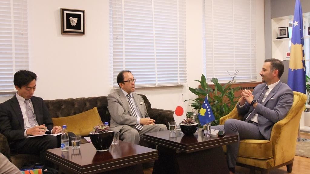 Ministri i Zhvillimit Ekonomik, Valdrin Lluka, priti sot gjatë ditës në takim Ambasadorin e Japonisë në Vjenë - Jo-rezident në Prishtinë, Kiyoshi Koinuma dhe Sekretarin e Parë, të kësaj Ambasade, Mitsunori Ogasawara, me të cilët biseduan mbi zhvillimet e përgjithshme ekonomike në vend, me theks të veçantë për sektorët që mbulon Ministria.