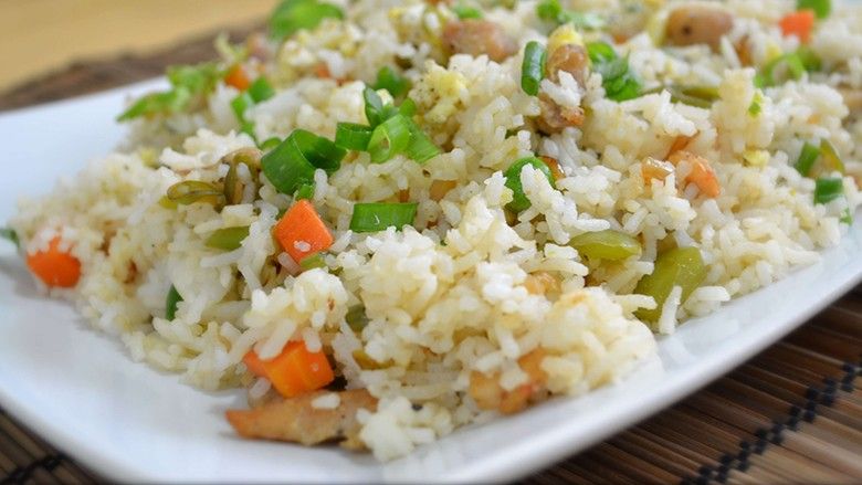 Përbërësit: fileta pule, oriz basmati, vaj ulliri, kripë, lëng limoni, miell misri, xhenxhefil i grirë imët, hudhër e grirë, qepë, karrota të copëtuara, ve, salcë soje dhe hudhre, piper i bardhë.