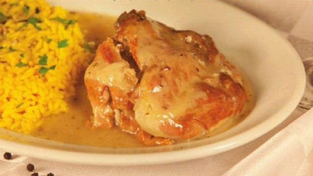 Skuqim miellin në pak gjalpë, shtojmë pak nga lëngu i mishit bashkë me lëngun e limonit dhe e përziejmë mirë.