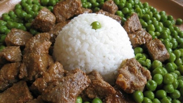 Bizelet servohen të nxehta në kombinim me pilaf, patate të skuqura dhe perime të ndryshme. /Telegrafi/