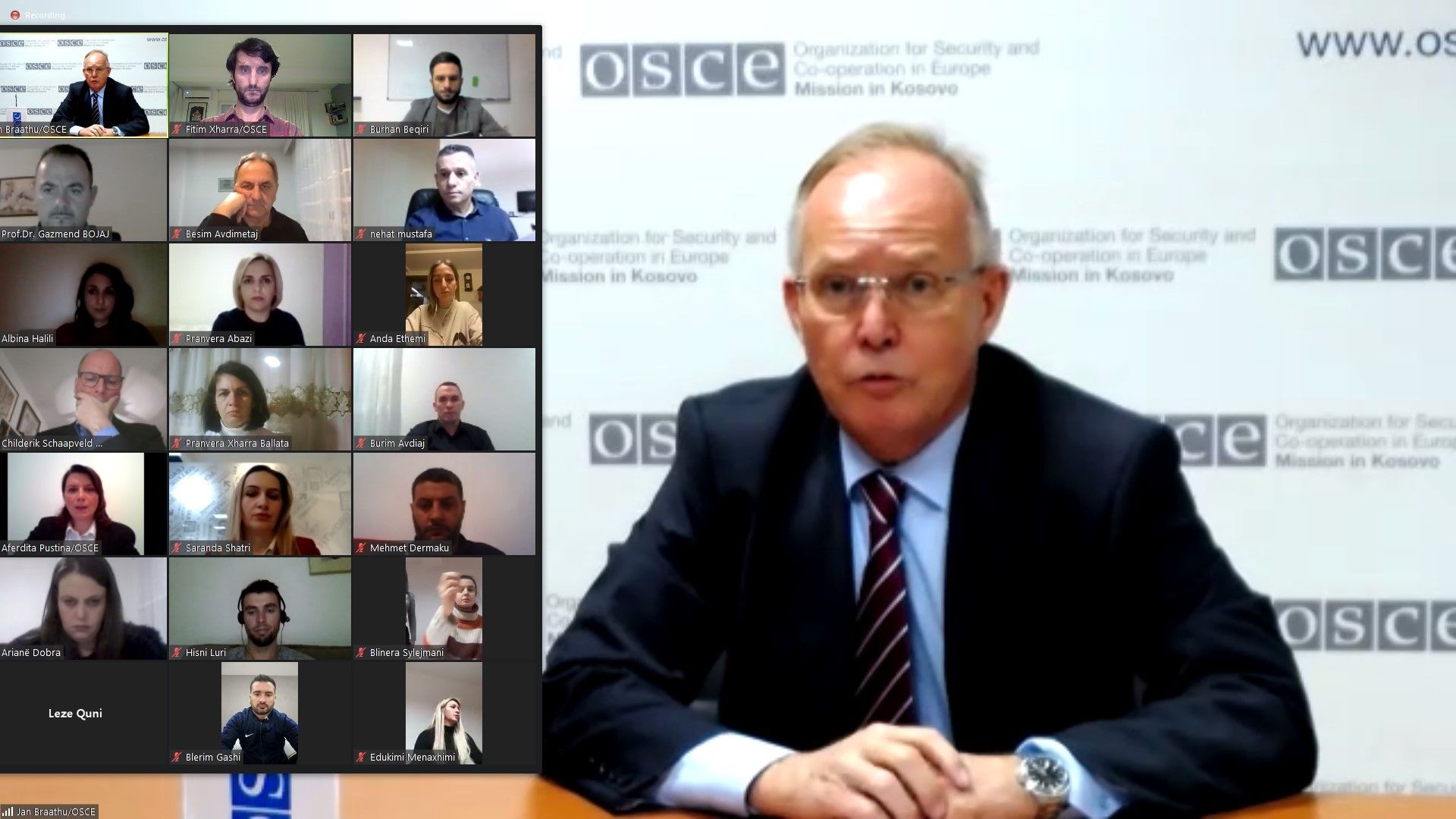 “Mbyllja e shpejtë e objekteve arsimore, si dhe nevoja urgjente për të kaluar nga mësimi nëpër klasa në mësim onlajn ishte ndër sfidat më të mëdha me të cilat është ballafaquar ndonjëherë sektori arsimor. Për më tepër, nxënëseve të të gjitha moshave, të reja e të rinj, iu ndërpre kontakti i drejtpërdrejt dhe humbën praninë fizike të bashkëmoshatarëve. Këto sfida i kanë rënduar të rinjtë dhe pashmangshmërisht kanë shkaktuar stres dhe potencialisht probleme shëndetësore të natyrës mendore dhe emocionale,” tha Jan Braathu, Shef i Misionit të OSBE-së në Kosovë.