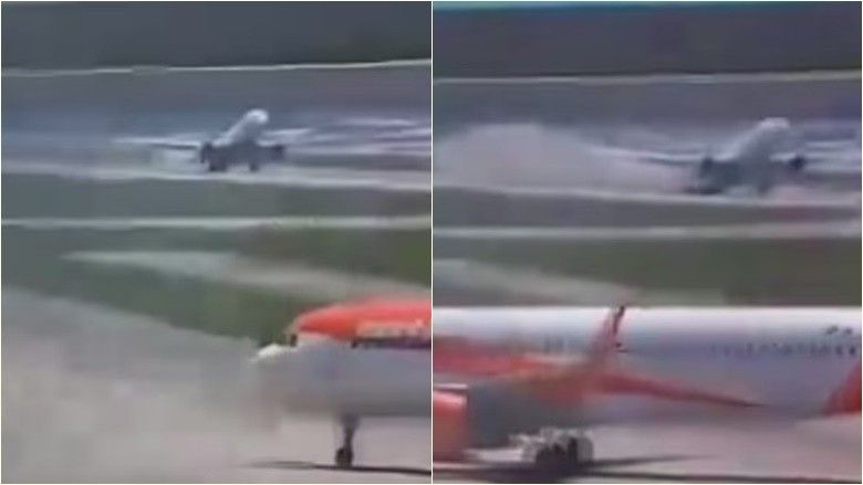 Dhe pamjet tregojnë aeroplanin, i cili mund të transportojë më shumë se 500 pasagjerë në të njëjtën kohë, nuk ishte në gjendje për t'u ngritur pasi tymi dhe mbeturinat fluturojnë pas tij gjatë ngritjes së dështuar.