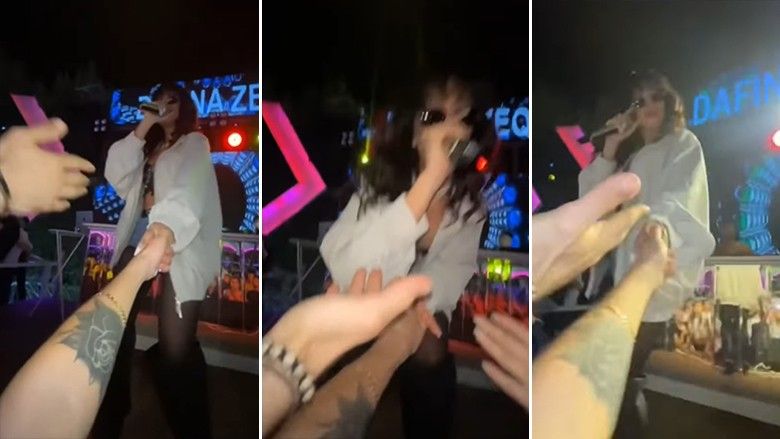 Një gjë e tillë i ka ndodhur së fundmi këngëtares, në një nga koncertet e saj, ku një fans i ka shtrënguar dorën dhe nuk e lëshonte.