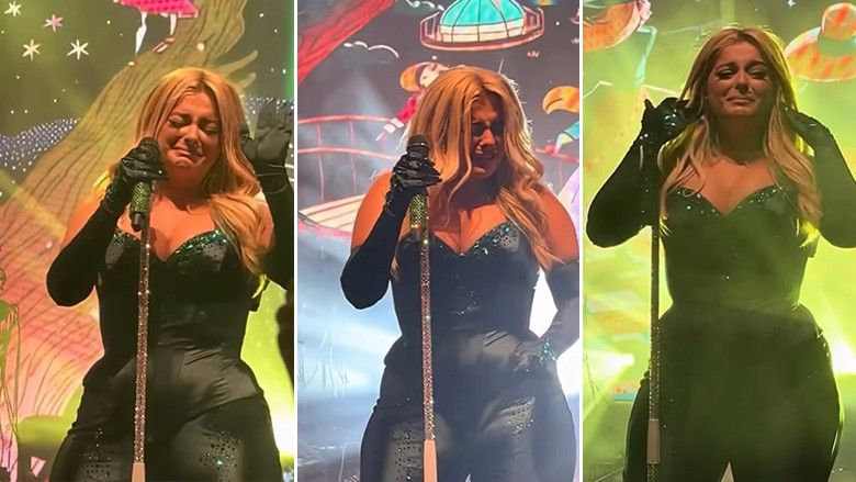 Momenti kur Bebe Rexha nuk i mban dot lotët në skenë pasi iu kumton fansave lajmin se është ndarë nga i dashuri
