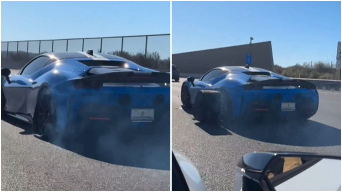 Pamjet u shpërndanë në rrjetin social Instagram dhe modeli SF90 blu u pa përgjatë autostradës Route 73 pranë Newport në Kaliforninë jugore.