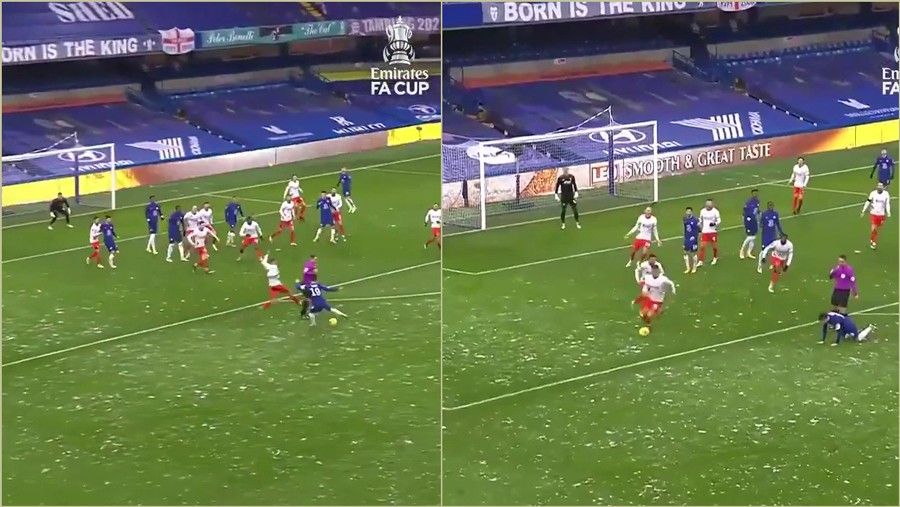 Momenti kur gjyqtari bllokoi goditjen e Mason Mount drejt portës në fitoren ndaj Luton