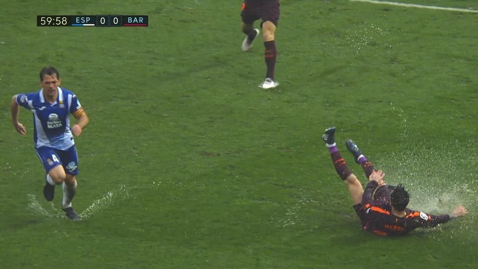 Momenti kur Messi u rrëzua në fushën përplot ujë të Espanyolit (Video)