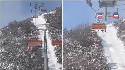 Momenti kur një fëmijë "mbeti i varur në një ski-lift" përpara se të bie rreth 12 metra poshtë