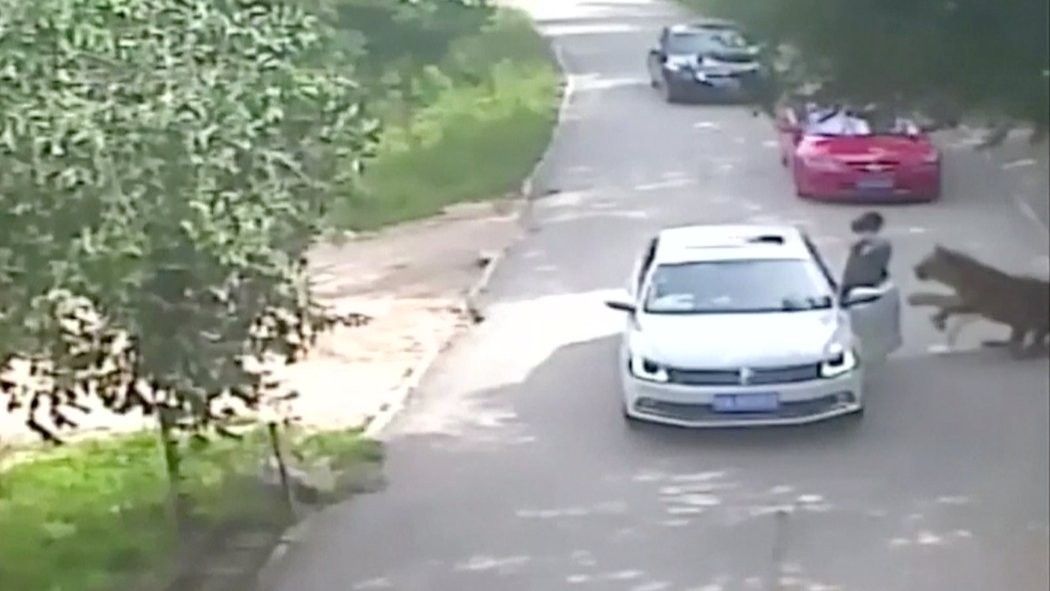 Pamjet drithëruese të kamerave të sigurisë të kapura në Badaling Wildlife World në Pekin, Kinë, treguan gruan, emri i së cilës nuk u bë i ditur, duke dalë nga makina e saj e argjendtë përpara se macja e madhe t'i hidhej.