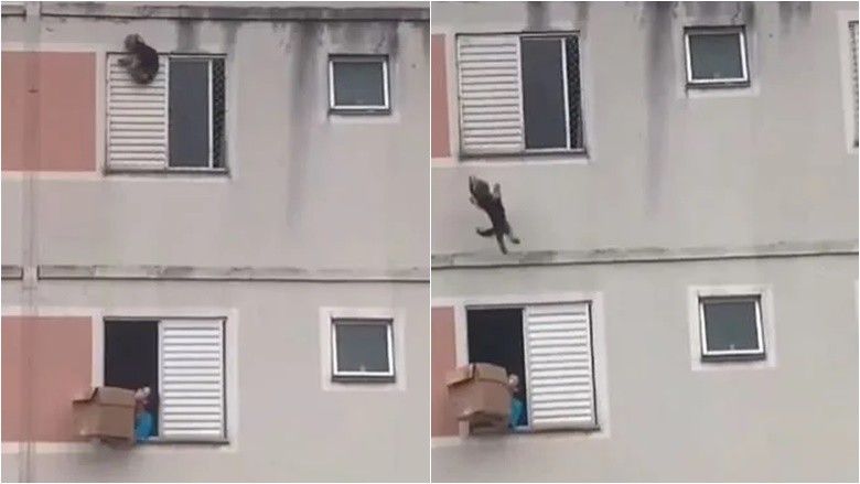 Momenti kur një grua shpëton qenin duke rënë nga dritarja e katit të fundit të banesave në Brazil