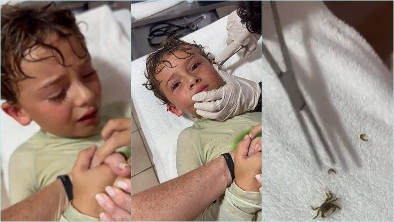Ky është momenti tronditës kur një mjek hoqi një “gaforre të gjallë” nga veshi i një djali pasi ai ndjeu diçka që i lëvizte në kokë pas një udhëtimi në plazh në Meksikë.