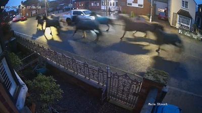 Momenti kur një tufë kuajsh vrapon nëpër rrugët e fshatit anglez pasi ikën nga stallat aty pranë
