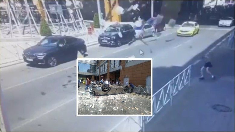 Sipas mediave të huaja, përcjell Telegrafi, bëhet fjalë për një ngjarje ku një veturë BMW M4 Coupe ra nga kati i tretë i një parkingu në qytetin rus Krasnodar dhe u përplas përmes barrierës së një qendre tregtare.