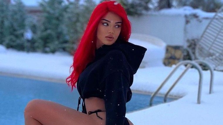 Modelja e shndërruar në këngëtare ka pozuar në borë pranë një pishine. /Telegrafi/