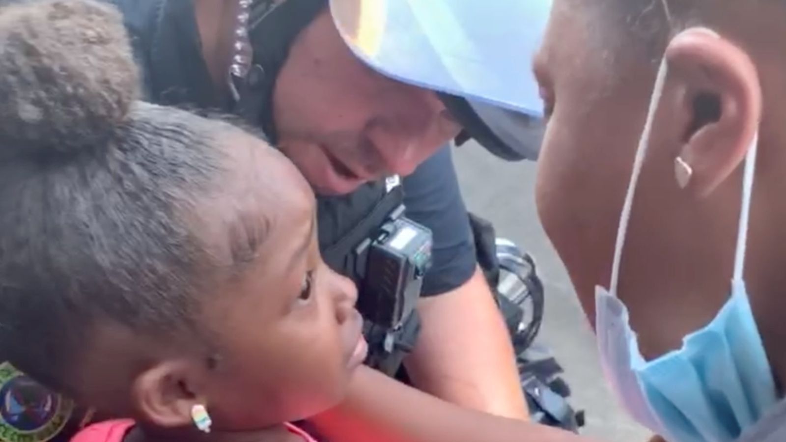 Një polic përqafoi një vajzë pesë vjeçare me ngjyrë gjatë një proteste të George Floyd, pasi ajo filloi të qante dhe e pyeti oficerin – “mos do të na qëllosh?”.