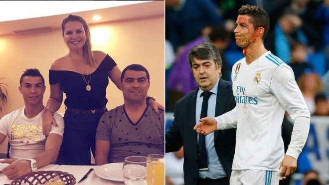 Me këtë rast Ronaldo u gjakos në fytyrë dhe u detyrua të mjekohet jashtë fushës.