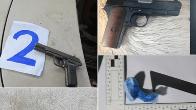 "Pesë pako me substancë pluhur të bardhë, 52 fishekë nga një pushkë automatike kalibri 7.62, dy fishekë nga një pistoletë kalibri të panjohur dhe një fishek nga një pushkë automatike u gjetën në I.J. Tek S.Z. (36) u gjetën dhe sekuestruan 20 fishekë nga një pushkë automatike kalibri 7.62, një pistoletë dhe një karikator me dy fishekë që i posedonte pa leje, si dhe një peshore dixhitale me mbetje të një lënde pluhur të bardhë".