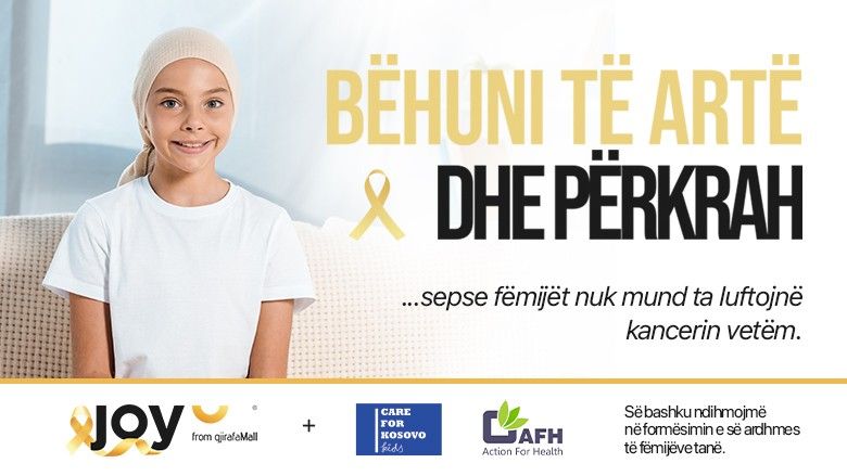 Joy from GjirafaMall ka zgjedhur që në muajin shtator të përkrah organizatat “Action for Health” dhe “Care for Kosovo Kids”, duke veshur platformën e saj me ngjyrë të artë. Këtë e bëjmë me qëllimin e rritjes së vetëdijesimit për këtë sëmundje dhe për të mbështetur financiarisht fëmijët e prekur me kancer.