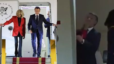 Një video e publikuar në rrjete sociale tregon Zonjën e Parë të Francës duke “goditur me shuplakë” presidentin Emmanuel Macron, teksa ai dilte nga aeroplani në Hanoi, Vietnam.