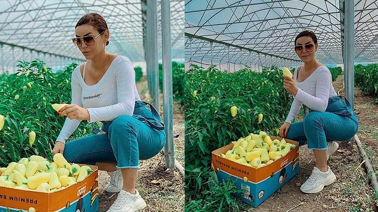 Në sezonin e turshive, Fjolla Morina pozon duke mbledhur speca në serrë