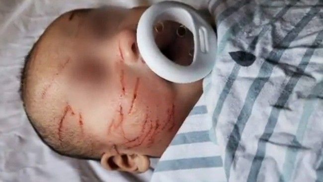 Një nënë mbeti pa fjalë pasi mori foshnjën 10 javëshe të gjakosur nga gërvishtjet e thella në të gjithë fytyrën.