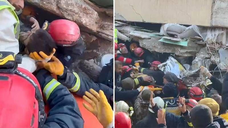 Ekipet e zjarrfikësve të qytetit të Antalias, 108 orë pas tërmetit, shpëtuan të gjallë nënën dhe tre fëmijët e saj nga rrënojat në Hatay.