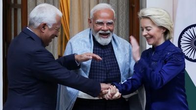 Presidentja e Komisionit Evropian, Ursula von der Leyen, si dhe presidenti i Këshillit Evropian, Antonio Costa iu bashkuan kryeministrit indian Narendra Modi në New Delhi të hënën si të ftuar nderi për Ditën e Republikës dhe paradën e saj vjetore ushtarake.