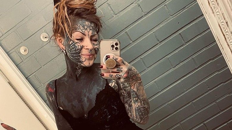 Balli, faqet dhe mjekra e saj janë gjithashtu të lyera. Siç tregoi dikur, asaj iu deshën vite dhe vite për të mbuluar plotësisht trupin e saj me tatuazhe.