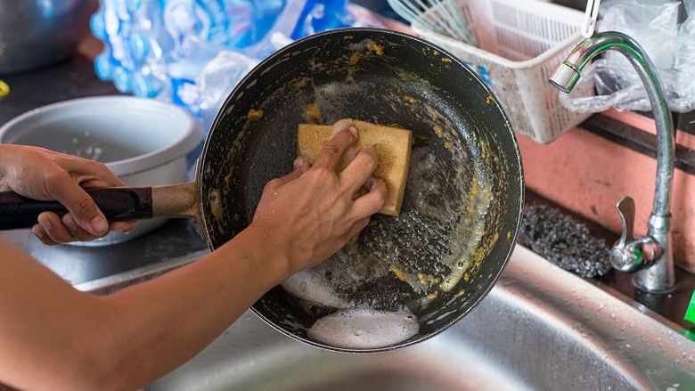 Të gjitha këto veprime janë të rëndësishme para se tiganin ta zhytni në ujë dhe ta lani me sfungjer.