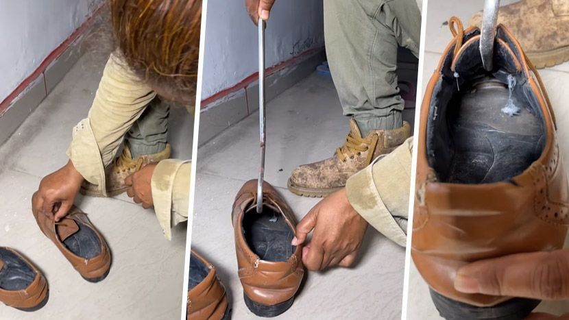 Shohim që me shkop po tenton ta nxjerrë nga këpuca gjarprin, por pa rezultat. Pas pak çastesh, ajo doli brenda dhe nxori jashtë “mysafirin e paftuar”.