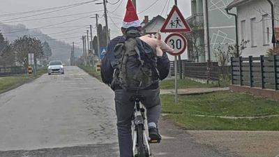 Në një faqe u publikua fotografia e një burri që po udhëtonte me biçikletë, ndërsa në shpinë mbante një çantë shpine nga i cili dukej një derr i vogël.