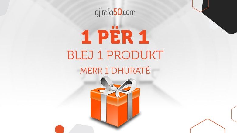 Nëse bleni produkte nga kampanja 1 PËR 1 në gjirafa50.com, ju do të përfitoni një produkt tjetër, dhuratë për blerjen tuaj.