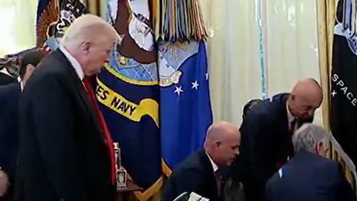 Ndërsa gazetarët po shoqëroheshin nga Zyra Ovale, anëtarët e kabinetit u kujdesën për burrin, përcjell Telegrafi.