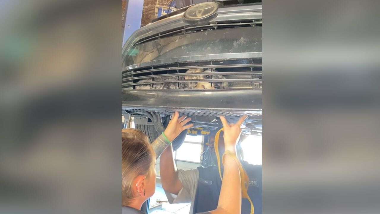Punonjësit e një servisi automobilash në Florida u desh të bënin shpëtimin e një qeni, i cili u godit nga një makinë dhe u bllokua brenda parakolpit për disa orë.