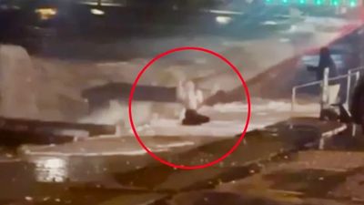 Pamjet e regjistruar nga një banor e tregon tërheqjen e saj nga vala dhe britmën e frikës kur u përplas pjesërisht nga uji.
