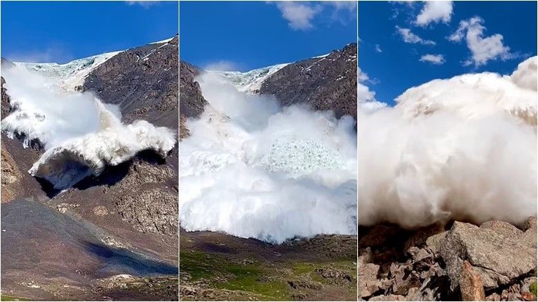 Një grup turistësh u përballen me një ortek akulli të shkaktuar nga një akullnajë që u ‘shemb’ në malet e Kirgistanit