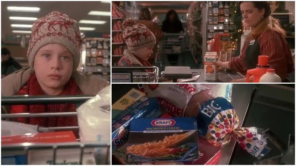Kushdo që e ka parë filmin Home Alone do t’i kujtohet gjithashtu edhe skena e famshme e Kevinit i cili shkon në dyqan për të bërë pazarin ditor, duke blerë një sasi të madhe ushqimesh dhe sende të përditshme shtëpie, të cilat i kushtuan më pak se 20 dollarë.