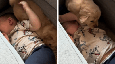 Një rast i tillë është me djalin e Julianne Stanford, i cili rritet pranë qenit familjar, një golden retriever shumë i ëmbël që është ende një qenush.