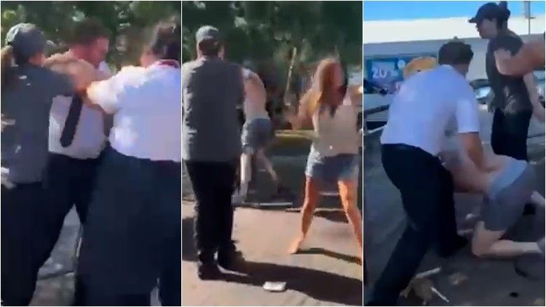 Shumë përleshje të tjera të vogla janë filmuar në të njëjtën kohë, përfshirë një grua që thotë "budalla i vogël" mes akuzave për tërheqje flokësh.