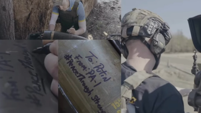 Në një video tjetër, Fitzpatrick u filmua duke shkruar një mesazh “shumë personal” për Putinin në një predhë.