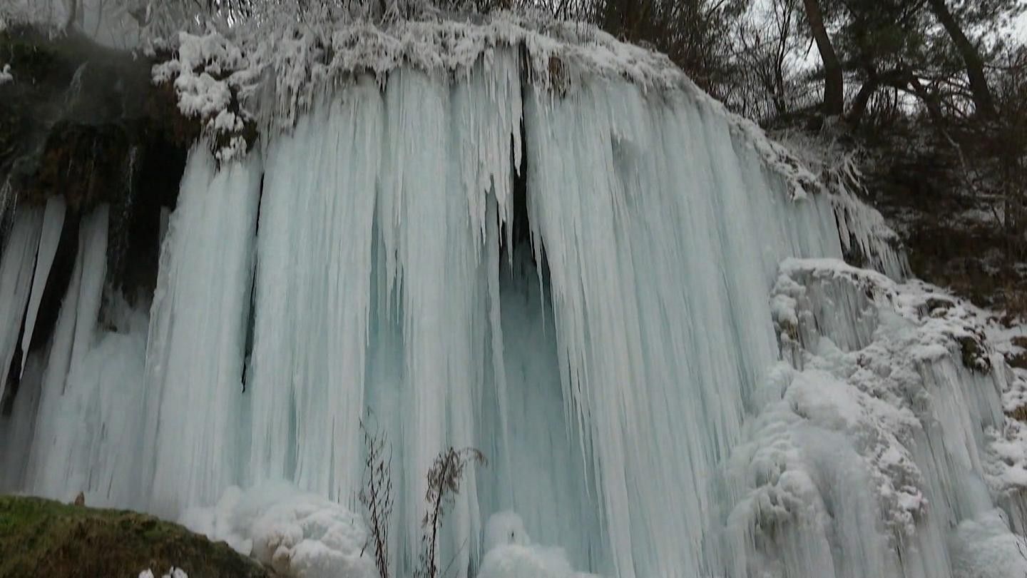 Një ujëvarë termale në Rumani është ngrirë për herë të parë në vitet e fundit