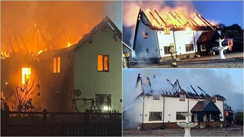 Një zjarr i madh shkatërroi një shtëpi në Angli, pronarët dhe kuajt e tyre u shpëtuan nga qentë e tyre