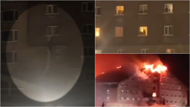 Dhe flakët dhe tymi u panë duke shpërthyer nëpër çati dhe dritaret e katit të poshtëm.