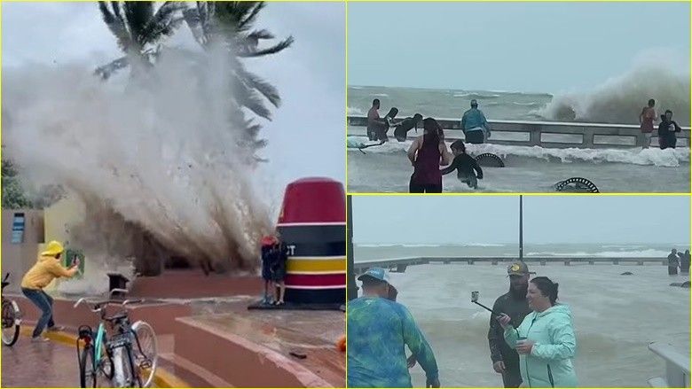 Autorët e selfie-ve për të kapur pamjet, duke rrezikuar të përballen me vdekjen teksa u afrohen valëve të sjella nga uragani Ian përgjatë skelës Key West të Floridës.