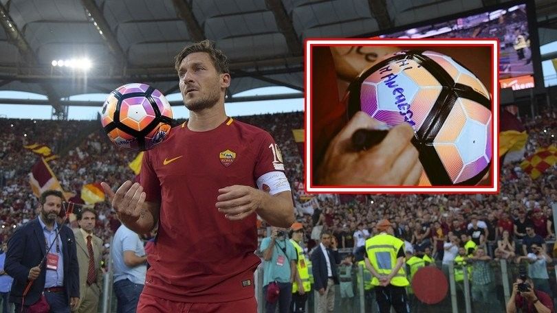 Njihuni me fatlumin që mori topin të cilin Totti e hodhi drejt tifozëve, ky është mesazhi që legjenda shkroi në të (Foto/Video)