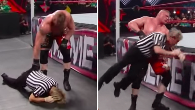 Nokautohet edhe gjyqtari - Brock Lesnar e kap atë me vetëm një dorë dhe e fut sërish në ring