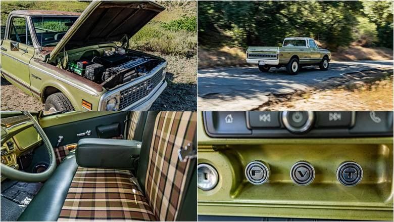 Ky Chevrolet C20 i vitit 1970 duket si një kamionçinë e vjetër, me trup të ndryshkur.