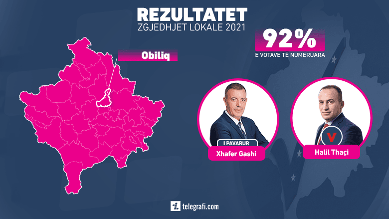 Në Komunën e Obiliqit kur janë numëruar mbi 92% të votave, kandidati i pavarur Xhafer Gashi kryeson ndaj kandidatit të LVV-së.