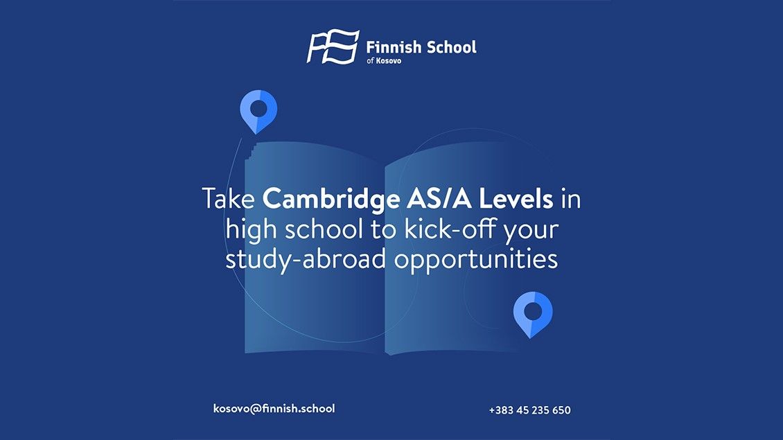 Shkolla Finlandeze është një institucion arsimor i vlerësuar në Kosovë, që ofron programin prestigjioz të shkollës së mesme Cambridge AS/A Levels, i vetmi në Kosovë. Si e vetmja Shkollë Ndërkombëtare Cambridge në vend që ofron AS/A Levels, shkolla kombinon kurrikulën e njohur të Cambridge International dhe qasjen e vlerësuar të arsimit finlandez, duke fuqizuar kështu nxënësit me një arsim transformues që i përgatit ata për universitete prestigjioze në mbarë botën.