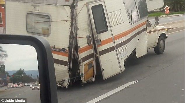Kalimtarët e rastit shikonin me habi një kamp-shtëpizë motorike lëvizte përgjatë një rruge në Kaliforni të Shteteve të Bashkuara, derisa ishte në gjendje tepër të rëndë.